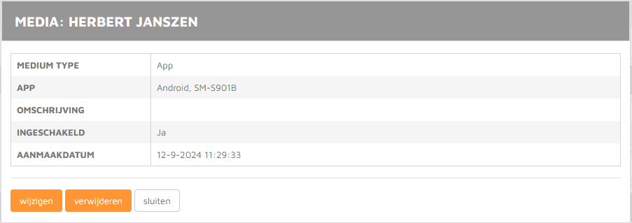 Dit mediatype wordt automatisch toegevoegd aan de deelnemer media, wanneer de deelnemer inlogt in de iTelAlert app.