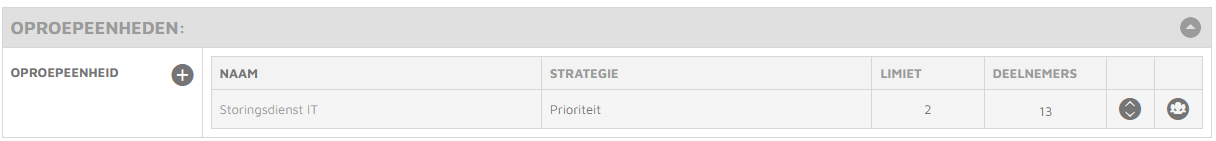 Een oproepeenheid is een verzameling van deelnemers, functies en/of diensten. De oproepeenheid wordt bij een alarm opgeroepen volgens een ingestelde strategie. Je kunt meerdere oproepeenheden instellen en deze op verschillende manieren benaderen.