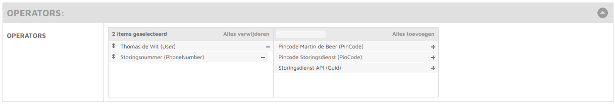 Wanneer er een operator gemaakt is met een telefoonnummer houdt dit in dat wanneer er vanuit dit telefoonnummer gebeld wordt het scenario gestart mag worden, tevens geldt dit ook voor starten via sms.