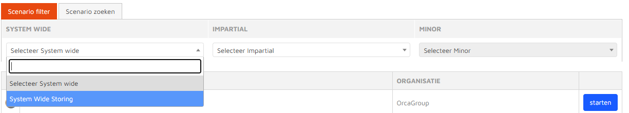 Bovenaan de pagina vind je een zoekbalk waarin je (een deel van) de naam van een scenario kunt invoeren.