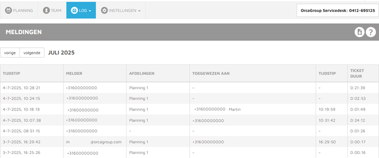 - Ticket duur: Hoe lang de melding geduurd heeft