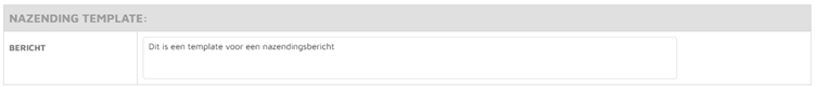 Wanneer de module “Uitgebreide nazending” actief is voor je omgeving dan heb je hier de optie om een bericht in te voeren welke bij het starten van een nazending vooraf ingevuld staat.